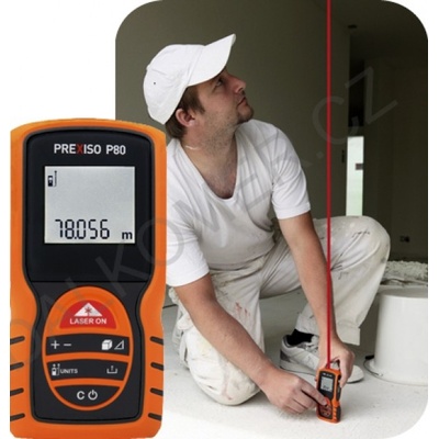 Laserový dálkoměr Prexiso P80: Měřte vždy přesně a rychle s přístrojem Prexiso P80. - Přesnost: ± 1.5 mm - Rozsah dálkoměru: 0.05 - 80 m - Plocha, objem - Plus, minus,...