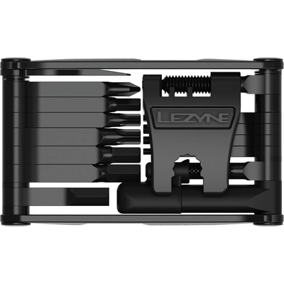 Lezyne SUPER V23 multikľúč Skutočne super multikľúč s duralovými bočnicami LEZYNE SUPER V má okrem bitov z chrom-molybdenovej ocele aj držiak na spájací článok reťaze. Bity majú špeciálnu čiernu protikoróznu úpravu.