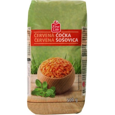 Fine Life Čočka červená 1x500g ZÁKONNÝ NÁZEV POTRAVINY čočka červená loupaná SLOŽENÍ čočka červená loupaná ALERGENY Neuvádí se, MŮŽE OBSAHOVAT: Obiloviny obsahující lepek ...