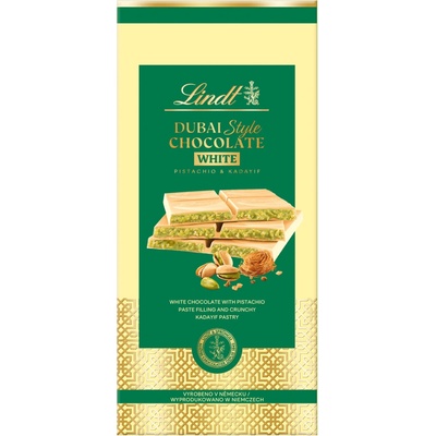 Lindt Dubajská čokoláda bílá 150 g Ponořte se do sladkého luxusu s Dubajskou čokoládou od Lindt. Sametově jemná bílá čokoláda Lindt se snoubí s bohatým krémem z pistácií a...