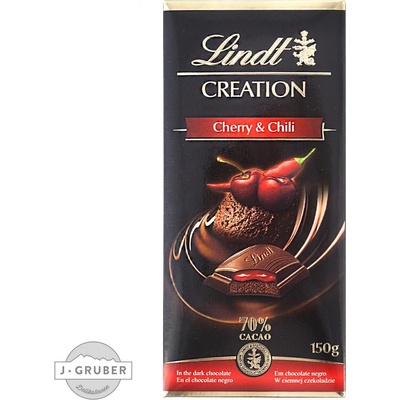 Lindt CREATION Hořká čokoláda s višňovou a chilli náplní 70% 150g Čokoláda Lindt CREATION Cherry & Chilli má díky vysokému podílu kakaa chuť klasické hořké čokolády. Čokoláda...