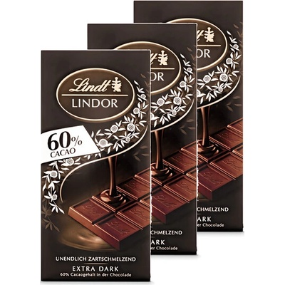 -- Lindor Lindt 60 % 3 balení čokolády po 100gO výrobciŠvýcarští Mistři čokolády LINDT, hnáni touhou po opravdu kvalitní čokoládě a vášní pro dokonalost, vyvíjejí a zdokonalují...