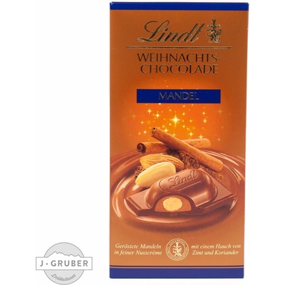 Lindt Vánoční čokoláda mléčná s mandlemi 100g Pro zvláště náročného znalce. Vánoční čokoláda s mandlemi Lindt vyrobená z jemné alpské mléčné čokolády je zušlechtěna typickým...