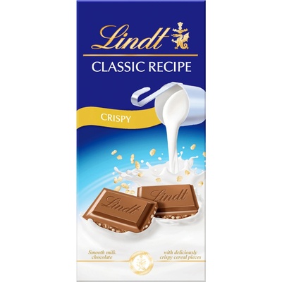 Lindt Classic Recipe Crispy 100g V letních měsících upozorňujeme na riziko roztečení čokoládových výrobků během přepravy. Zvažte prosím toto riziko během svého nákupu. Tabulka...
