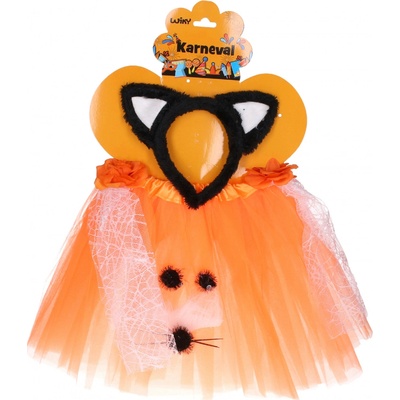Set karneval liška. Balení obsahuje čelenku uši, sukni. Šíře sukně v pase je 25cm. Délka je 32 cm.