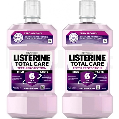 Ústní voda LISTERINE® TOTAL CARE TEETH PROTECTION MILD TASTE při používání dvakrát denně zlepšuje ústní hygienu díky kompletnímu 6násobnému účinku. S jemnější chutí bez...