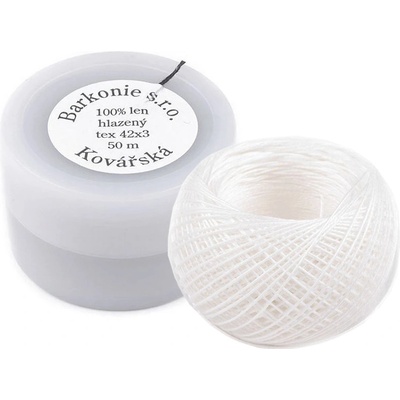 Univerzální pevná kovářská - lněná nit značky Barkonie upředena ze 100% lnu v bílé přírodní barvě. Tyto kvalitní české nitě můžete použít také na šití těžké konfekce, která...