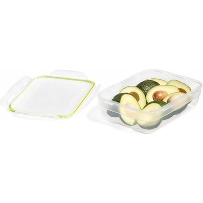 Vhodné do mrazáku, mikrovlnky i myčky nádobí. Vzduchotěsný box obdelníkového tvaru s těsněním a klipy pro bezpečné uzavření. Nepropouští pachy a udržuje obsah bez úniku. Objem 2400 ml, rozměry 20 x 20 x 11.5 cm. EAN 5906485659410