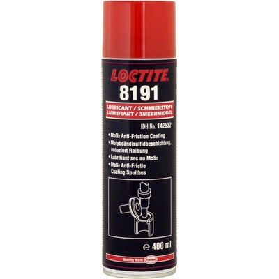 LOCTITE LB 8191 (Původní název LOCTITE 8191 - IDH 142532 / 26493), je černý aerosolový sprej na bázi sirníku molybdeničitého (MoS2), který tvoří suchý mazací film s vynikajícími antifrikčními vlastnostmi. Tento produkt chrání kovové části před třením a korozí a...