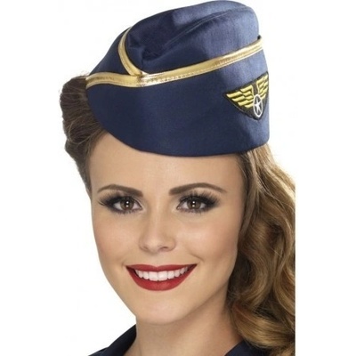 Tmavě modrý čepeček pro letušku se zlatým lemováním. Velmi vhodný k uniformě letušky nebo jako doplněk na párty v uniformách.