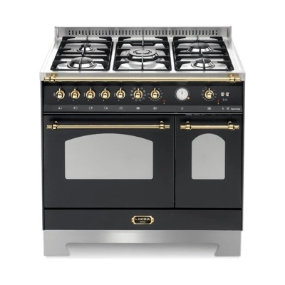 Retro sporák kombinovaný Lofra RNMD96MFTECI, volně stojící, plynová deska a dvakrát elektrická trouba, barva černá matná, šíře 90 cm, teleskopické výsuvy v hlavní troubě,...
