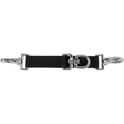 Lonžovací spojka s karabinami a kroužky. Materiál: 100% polyamid Délka: 18cm Barva: černá