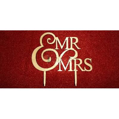 Zápich na dort - Nature Mr & Mrs Jedinečná ozdoba v dřevěném provedení s nápisem "MR & MRS" je ideálním doplňkem svatebního dortu. Díky této elegantní dekoraci iz obyčejného svatebního dortu vytvoříte dort jedinečný, který bude každý obdivovat. - počet: 1 ks -...