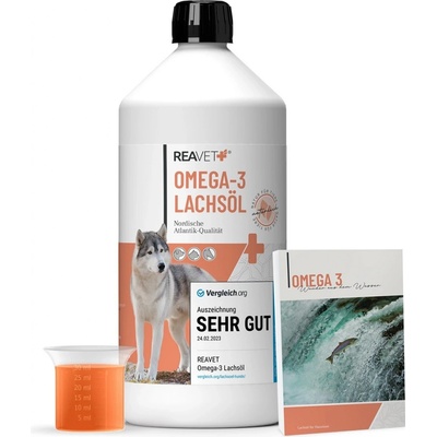 Omega-3 lososový olej pro psy, kočky a koně - podpora kloubů, kardiovaskulárního systému, kůže a srsti zvířat Lososový olej REAVET je vysoce kvalitní 100% přírodní olej, šetrně...