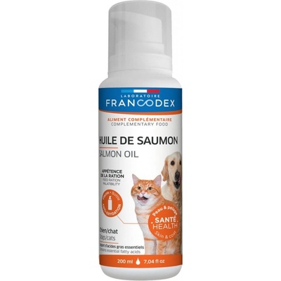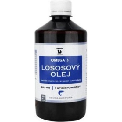 Doplňkové krmivo pro psy a kočky. 100% lososový olej získávaný ze suroviny potravinářské kvality. Je bohatý na vysoce nenasycené mastné kyseliny (eikozapentaenovou,...