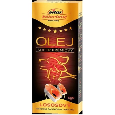 VITAR Veterinae Lososový olej 500ml Přírodní a za studena lisovaný lososvý olej je zdrojem esenciálních mastných kyselin, které mají úžasné účinky pro celý organizmus. Při...