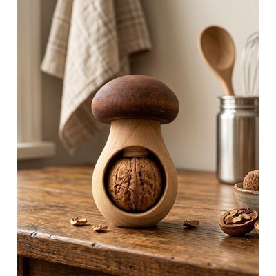 Dřevěný louskáček na ořechy ve tvaru hříbku je vyrobený z masivního bukového dřeva. Na povrchu je dřevo ošetřeno olejem. Louskáček má rozměr 10 x 6 cm.