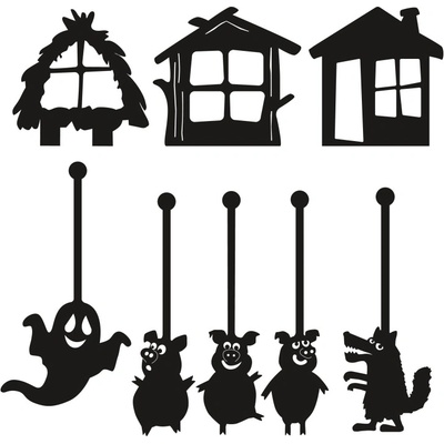 Set loutek a kulis k pohádce o Jeníčkovi a Mařence, zlé ježibabě a voňavé chaloupce z perníku. Oblíbená pohádka bratří Grimmů. Loutky, kulisy, rekvizity, pozadí divadelní scény....