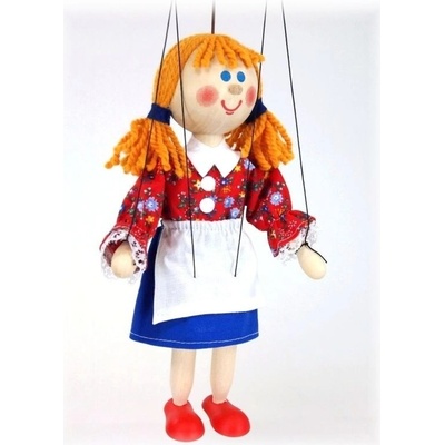 Loutka pejska je uchycena na tenkých provázcích k dřevěnému vodícímu kříži. zlepšuje jemnou motoriku prstíků, podporuje soustředění, probouzí a rozvíjí dětskou fantazii...