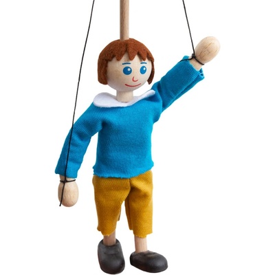 Jsem JENÍČEK - loutka na tyči s dvěmi vodícími nitěmi. Hodím se pro menší i větší děti, procvičíte se mnou Vaše prstíky a dejte své fantazii co proto při vymýšlení Vašich...