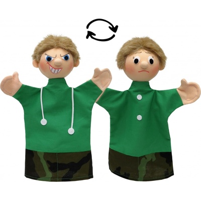 Textilní maňásek se dvěma obličeji. Hodný a zlý kluk. Na jedné straně vyjadřuje kladné a na druhé záporné emoce. Vhodné jako výuková pomůcka. Čistit jen povrchově. Vyrobeno...