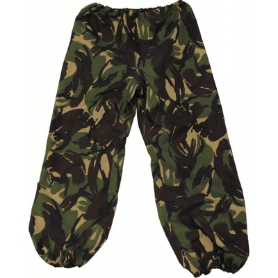 Originální britské vojenské nepromokavé kalhoty, laminát, DPM TARN, použité. Odolné proti oděru. Stahovací šňůrka v pase. Stahovací nohavice na gumičce.