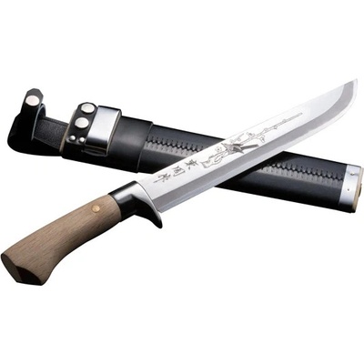 Originální japonský lovecký nůž AZUMASYUSAKU - leštěná čepel s rytinou SLAVÍKA Originální autentický výrobek ze slavné kovářské oblasti TOSA (Japonsko) Vyrobeno zkušenými...