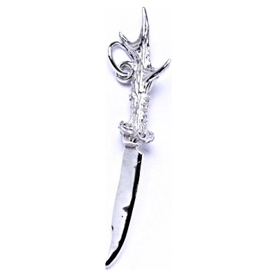 Stříbrný přívěšek ve tvaru loveckého nože. Velikost stříbrného přívěšku je 39 mm. Materiál je stříbro 925/1000. Orientační váha přívěsku je 1,35 g.