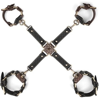 Elegantní sada pout s pevnou čtyřcestnou spojkou pro nezapomenutelné BDSM zážitky. Kombinace černé a hnědé s kovovými detaily vytváří temně svůdný dojem, zatímco nastavitelné...