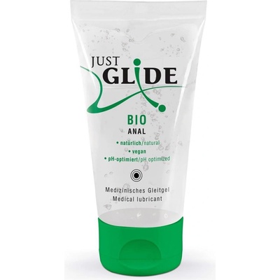 Anální lubrikační gel JUST GLIDE BIO Anal 50 ml na bázi vody se zvláčňujícími a zvlhčujícími účinky. Neobsahuje tuky ani oleje.