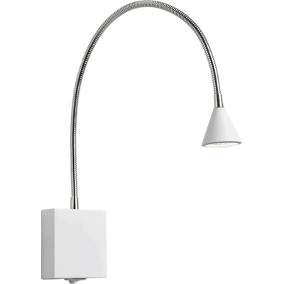 Nástěnná lampička s ohebným krkem.Skvěle se hodí například do ložnice jako čtecí lampička.Na spodní straně základny je vybavena vypínačem.
