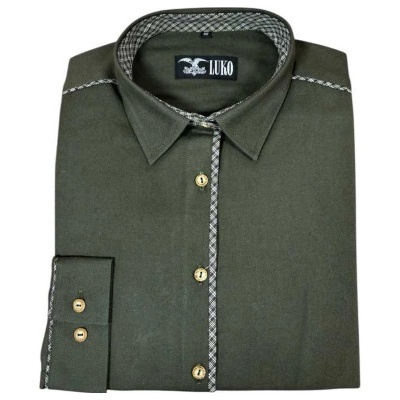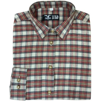 Dámská košile s dlouhým rukávem z oboustranně česaného flanelu s keprovou vazbou. Střih je vypasovaný se spodní obrubou do oblouku. Halenka má prsní záševky a díky tomu daleko lépe sedí.Myslivecké knoflíky. (na foto jiné knoflíky)