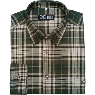 Luko pánská košile flanelová č.122212 Pánská košile z oboustranně počesaného kvalitního flanelu (100% bavlna) s dlouhým rukávem. Košile je v tmavě zelené barvě. Pánská košile z oboustranně počesaného kvalitního flanelu (100% bavlna) s dlouhým rukávem. Jedná se o...
