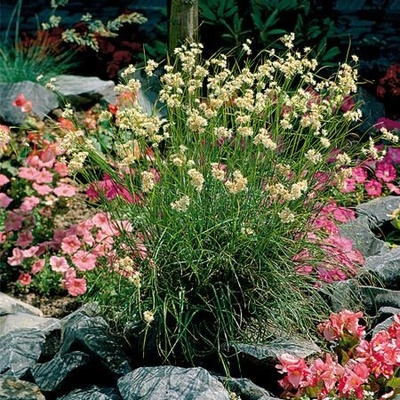 Luzula nivea bika sněžná 1. Vzrůst a tvar Vytrvalá trsnatá bylina s volnějším, elegantním habitem. Dorůstá výšky 30–40 cm, v květu až 50 cm. Vytváří kompaktní, jemně převislé trsy. 2. Listy / efekt Úzké, sytě zelené, jemně chloupkaté listy s hedvábným leskem. Trsy...