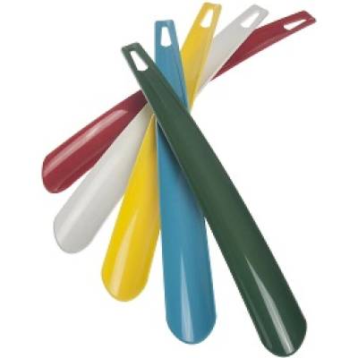 Krátká plastová obouvací lžíce, barevná. Celková délka 17 cm. Pokud mají vaše děti problém s obouváním bot nebo bačkůrek, může jim obouvací lžíce pomoci.