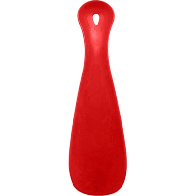 Dlouhá plastová obouvací lžíce na boty, z pružného plastu. S háčkem a dírkou na pověšení.