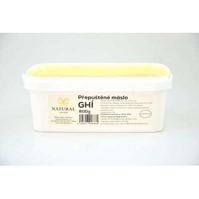 Složenímléčný tuk 99,8%AlergenymlékoPrůměrné výživové hodnoty na 100 g:Energie: 3692 kJ/898 kcalTuky: 99,8 g z toho nasycené mastné kyseliny: 64 gSacharidy: 0 g z toho...