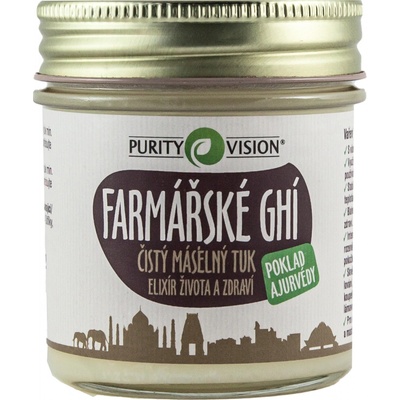 PURITY VISION Farmářské Ghí 120 ml Ghí neboli tzv. “přepuštěné máslo“ je podle Ajurvédy elixírem života a zdraví. Zamilujete si ho pro jeho jemnou máslovou chuť a vůni s tóny...