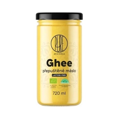 BrainMax Pure Ghee, přepuštěné máslo Ghí, BIO je vyrobeno z mléka ze šťastných volně pasoucích se krav. Pomalým přepouštěním ve vodní lázni vzniká téměř 100 % čistý máselný tuk,...