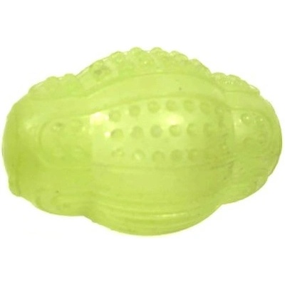 Pískací míček svítící ve tmě, o rozměrech 8 x 5,5 cm. TPR je druh vysoce kvalitního syntetického kaučuku.