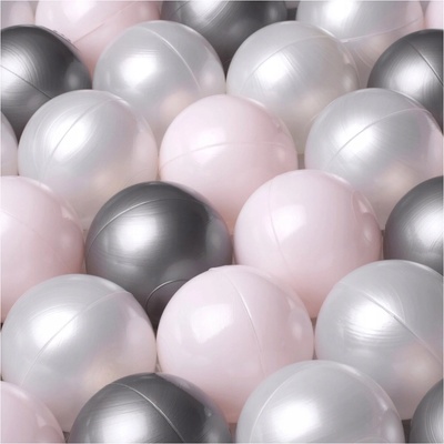 Sada míčků pro suchý bazén 200 kusů. Složení sady: - Jasně růžové-perlové – 50 ks - Perleťové – 100 ks - Stříbrné – 50 ks Míčky MISIOO do suchého bazénu 200 kusů. Míče mají...