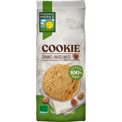 Špaldové cookies s lískovými oříšky Složení: špaldová (pšenice) mouka* 42 %, palmový tuk*, řepný cukr*, celozrnná špaldová (pšenice) krupice*¹ 11 %, pražené lískové ořechy* 9 %, hydrogenuhličitan amonný, mořská sůl *z kontrolované ekologické produkce Může obsahovat...