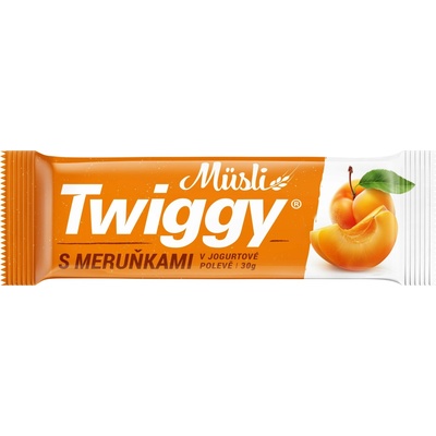 Detailní popis produktu Twiggy Müsli tyčinka s meruňkami celomáčená v jogurtové polevě je lahodným spojením křupavého müsli, sluncem zralých meruněk a jemné jogurtové polevy....