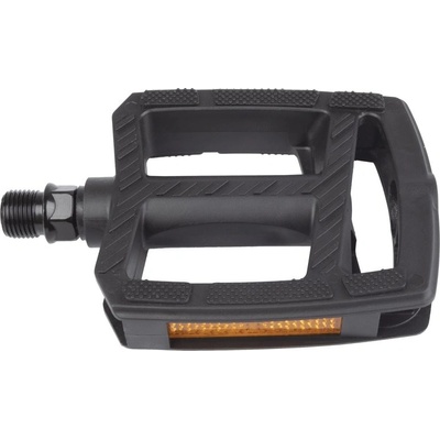 Pedály M-Wave Flat Materiál: Al, osa bor Ložiska: kluzné Osa: 9/16" Rozměry: 97x93x20 mm Barva: černá Odrazky: ano Upevnění šestihranným klíčem Balení: servisní Určeno pro...