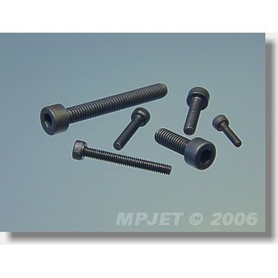 Šroub imbus M2×5 mm (10 ks) MP JET. příslušenství k modelům. Přesné ocelové šrouby M2×5 mm, imbusová hlava, DIN 912, povrchová úprava černěním.