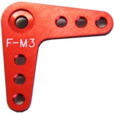 Hliníková L páka pro serva Futaba. Celková délka ramene 28 mm, osová vzdálenost otvorů M3 od středu tisícihranu páky 10, 15 a 20 mm.