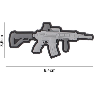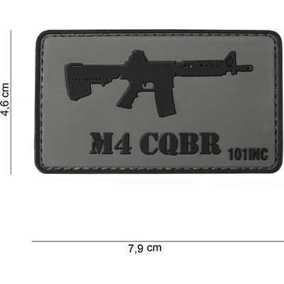 Gumová nášivka 101 Inc zbraň M4 CQBR - šedá