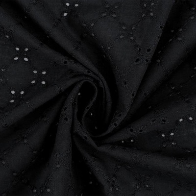 Látka Madeira kosočtverce černá. Složení: 100% bavlna. Gramáž: 94 - 102 g/m². Šíře: 150 cm. Tuto látku je možné ustřihnout od 0,5 m; dále po 10 cm. Madeira obecně je krásná plátěná látka, obvykle bavlněná, s typickým vzorem dírkové výšivky ve stejné barvě. Vyrábí...