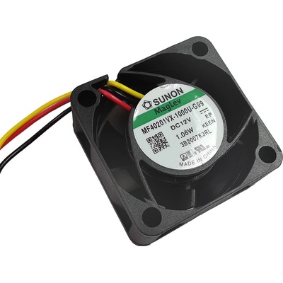 Axiální ventilátor 40x40x20mm 12V 80mA Sunon MagLev MF40201VX-1000U-G99Ventilátor s volnými dráty a třemi vodiči, ideální pro různé aplikace. Technické parametry: Typ ventilátoru: DC Druh ventilátoru: axiální Pracovní napětí: 4.5...13.8V Rozměry ventilátoru: 40x40x20mm...