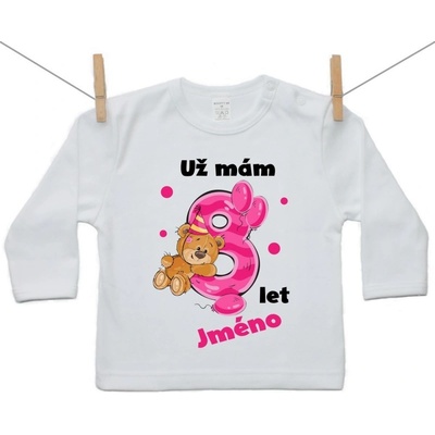 Boodyy Tričko s dlouhým rukávem Už mám 8let s Medvídkem a jménem dítěte Dívka